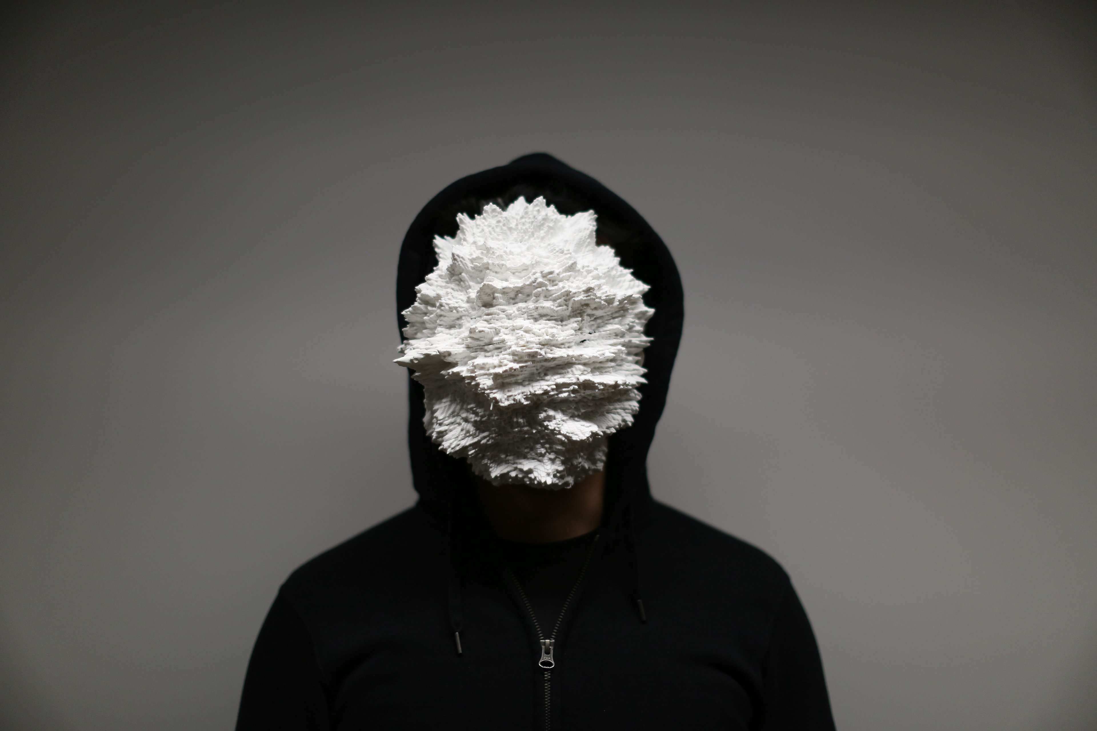 The results are 3D interpretations of machine language - ghost-like data faces that are not quite human, not quite machine: artefacts of in-betweenness. The physical manifestation of a dataface was made possible with 3D printing. The face renders the wearer as something between a human and a nonhuman when input back into the confused eyes of machine vision.